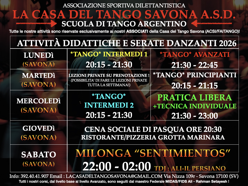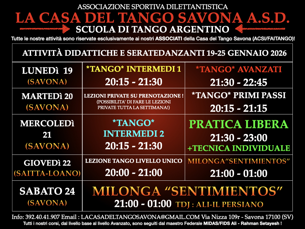 Minuti🌹Questa Settimana alla Casa Del Tango Savona ASD🌹