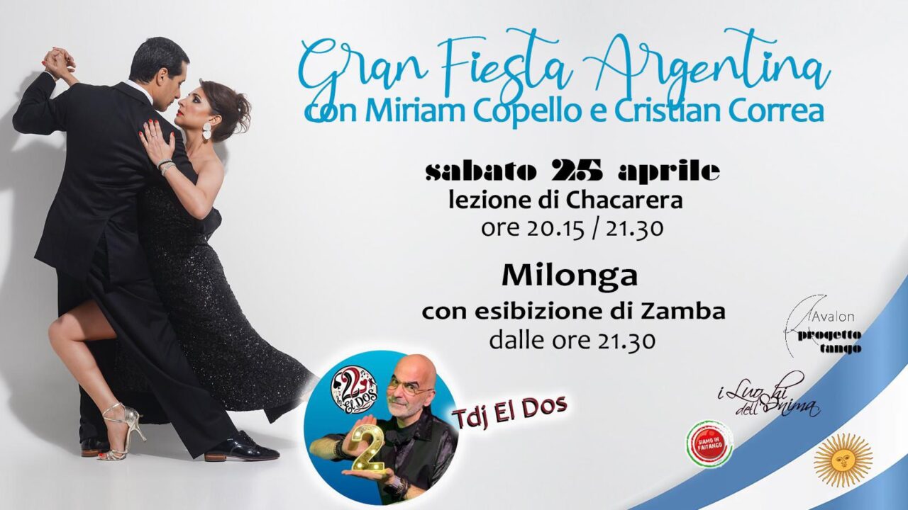 GRAN Fiesta Argentina approfittando della presenza dei Maestri Miriam Copello e Cristian Correa in Italia, tappa della loro tournée europea,