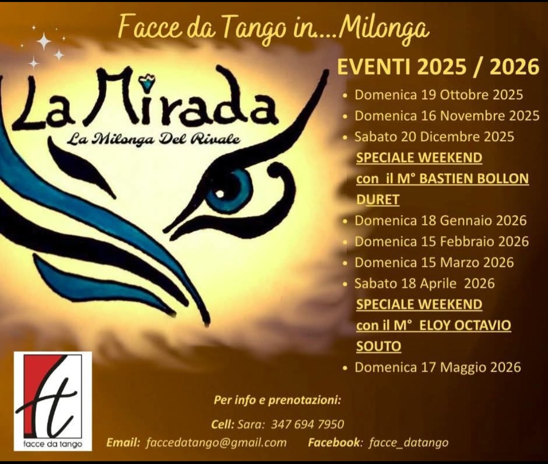 Nata da un gruppo di amici, cuore pulsante delle Facce da Tango, uniti dalla passione per il Tango, torna la Milonga a Ravenna (Via del Pettirosso 25 - San Marco) con un nuovissimo pavimento, pensato per i ballerini!
