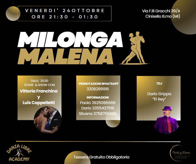 Stage in preserata con due ballerini di fama internazionale, freschi semifinalisti al Mondiale di Tango 2025: Vittoria Franchina e Luis Cappelletti, che nel corso dell'evento si esibiranno regalandoci la loro sensualità e perfezione tecnica.