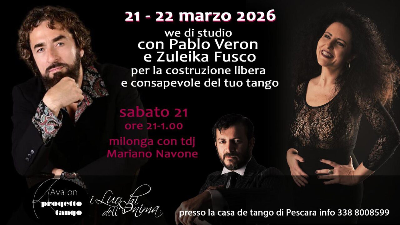 Sabato 21 marzo, dalle 16.30 alle 19.30, Pablo Veron e Zuleika Fusco terranno lo stage